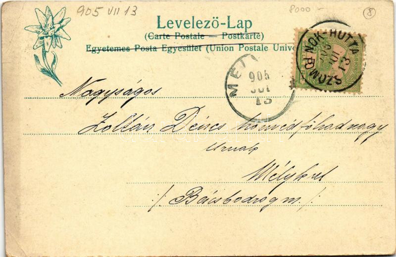 Beschreibung: 1905 Szomolnokhuta, Szomolnok-Hutta, Smolnícka Huta (Szepes, Zips); Panorama von Schmölnitzhütte. Feitzinger Ede 1902/12. 446. Psl. (EK)