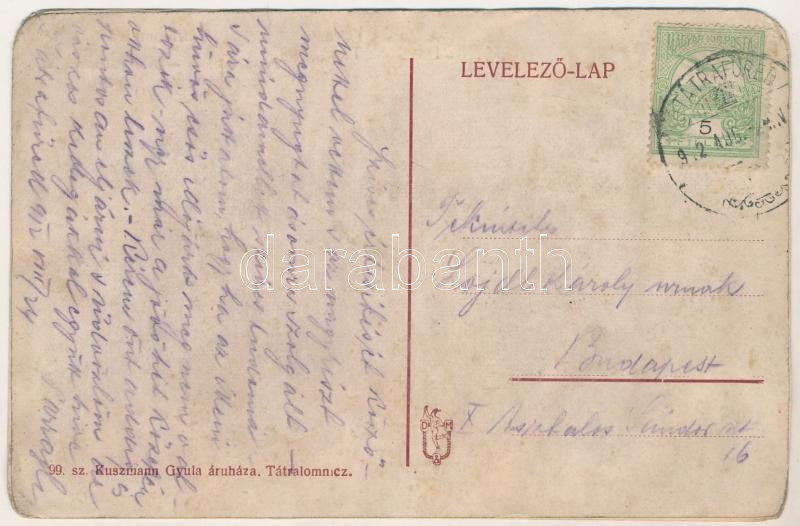 1912 Tátralomnic, Tatranská Lomnica (Magas-Tátra, Vysoké Tatry); Palot... https://www.darabanth.com/de/469-Fernauktion/469.0/Ansichtskarten/Slowakei~1500006/1912-Tatralomnic-Tatranska-Lomnica-Magas-Tatra-Vysoke-Tatry-Palota-szallo-Kuszmann-Gyula~II3175413