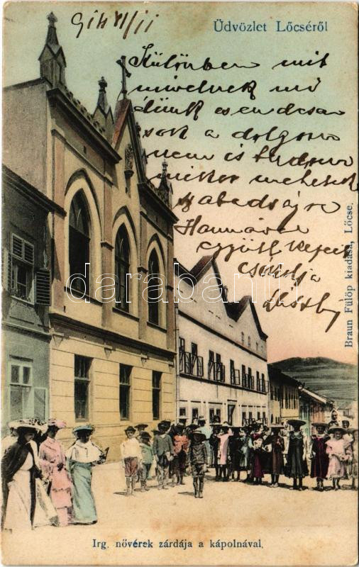 1914 Lőcse, Levoca; Irgalmas nővérek zárdája és kápolna. Braun Fülöp k... https://www.darabanth.com/de/469-Fernauktion/469.0/Ansichtskarten/Slowakei~1500006/1914-Locse-Levoca-Irgalmas-noverek-zardaja-es-kapolna-Braun-Fulop-kiadasa-nunnery-and~II3175275