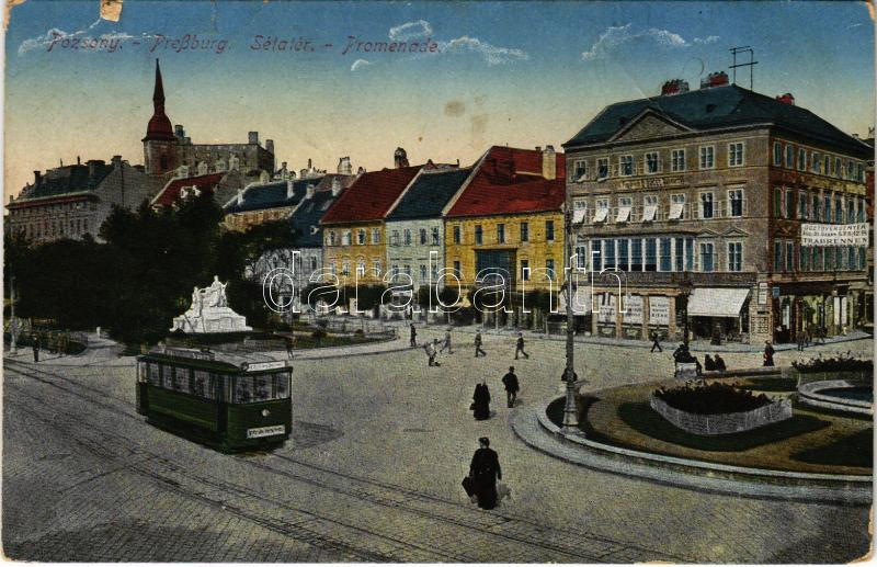 1917 Pozsony, Pressburg, Bratislava; Sétatér, villamos, Kern Endre üzl... https://www.darabanth.com/de/469-Fernauktion/469.0/Ansichtskarten/Slowakei~1500006/1917-Pozsony-Pressburg-Bratislava-Setater-villamos-Kern-Endre-uzlete-promenade-tram-shop~II3175704