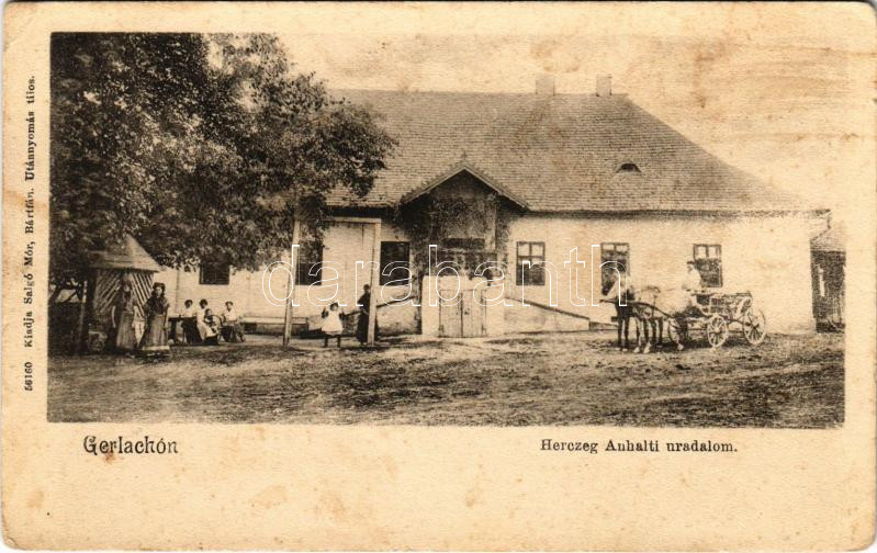 Gerla, Gerlachó, Gerlachov (Bártfa, Bardejov); Herceg Anhalti uradalom... https://www.darabanth.com/de/469-Fernauktion/469.0/Ansichtskarten/Slowakei~1500006/Gerla-Gerlacho-Gerlachov-Bartfa-Bardejov-Herceg-Anhalti-uradalom-kastely-lovaskocsi-Salg~II3173648