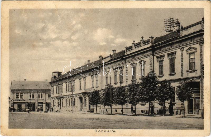 Beschreibung: Tornalja, Tornallya, Safárikovo, Tornala; Fő tér, Blicz Géza üzlete, szálloda. H. Friedmann kiadása / main square, shops, hotel (tűnyomok / pin marks)