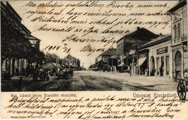 1905 Kisvárda, Szt. László utca, Piac tér, Kálmánczi Péter bőrkeresked... https://www.darabanth.com/de/469-Fernauktion/469.0/Ansichtskarten/Ungarn~1500004/1905-Kisvarda-Szt-Laszlo-utca-Piac-ter-Kalmanczi-Peter-borkereskedo-uzlete-Berger-Ign~II3174192