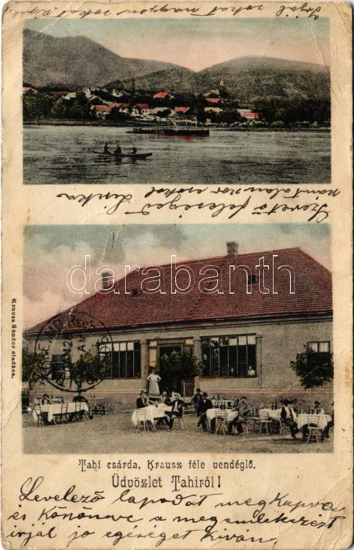 1906 Tahi (Tahitótfalu), Duna, Krausz Sándor vendéglője, csárdája és s... https://www.darabanth.com/de/469-Fernauktion/469.0/Ansichtskarten/Ungarn~1500004/1906-Tahi-Tahitotfalu-Duna-Krausz-Sandor-vendegloje-csardaja-es-sajat-kiadasa-Tulajdo~II3172103