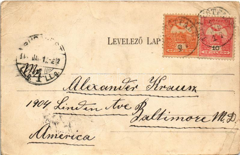 Beschreibung: 1906 Tahi (Tahitótfalu), Duna, Krausz Sándor vendéglője, csárdája és saját kiadása. Tulajdonos feleségének levele férjének Amerikába (EB)