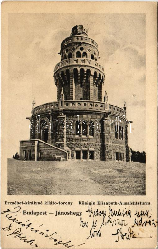 1911 Budapest XII. Jánoshegy, Erzsébet királyné kilátó torony. Böhm Gy... https://www.darabanth.com/de/469-Fernauktion/469.0/Ansichtskarten/Ungarn~1500004/1911-Budapest-XII-Janoshegy-Erzsebet-kiralyne-kilato-torony-Bohm-Gyula-kiadasa~II3170388