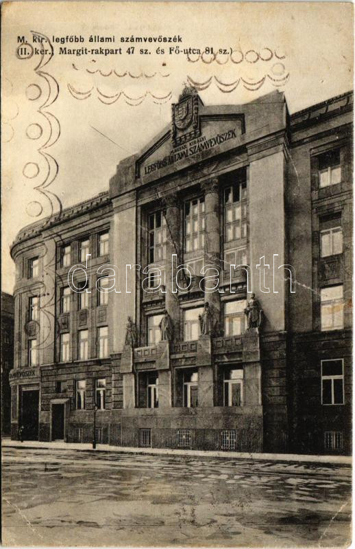 Beschreibung: 1921 Budapest II. M. kir. legfőbb állami számvevőszék. Margit rakpart 47. és Fő utca 81. (fa)