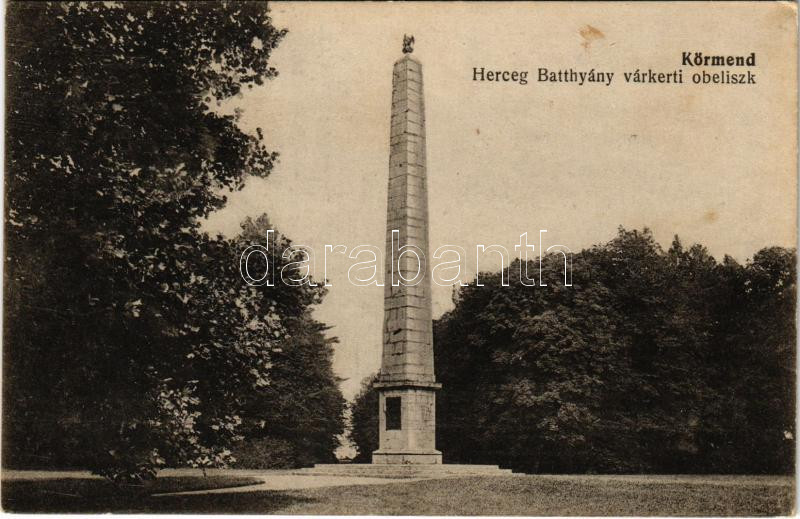 1921 Körmend, Herceg Batthyány várkerti obeliszk (fl) https://www.darabanth.com/de/469-Fernauktion/469.0/Ansichtskarten/Ungarn~1500004/1921-Kormend-Herceg-Batthyany-varkerti-obeliszk-fl~II3125364