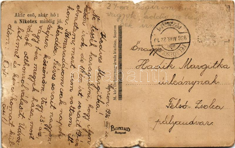 1936 Sopron, Széchenyi tér, Országzászló. Akár eső, akár hó: a Nikotex... https://www.darabanth.com/de/469-Fernauktion/469.0/Ansichtskarten/Ungarn~1500004/1936-Sopron-Szechenyi-ter-Orszagzaszlo-Akar-eso-akar-ho-a-Nikotex-mindig-jo-rekla~II3174326