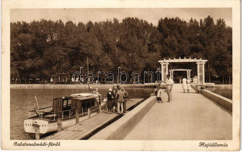1939 Balatonalmádi-fürdő, hajóállomás, "Badacsony" motorhajó https://www.darabanth.com/de/469-Fernauktion/469.0/Ansichtskarten/Ungarn~1500004/1939-Balatonalmadi-furdo-hajoallomas-Badacsony-motorhajo~II3169192