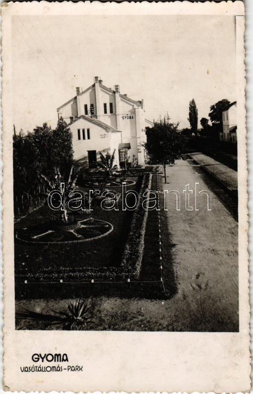 1941 Gyoma (Gyomaendrőd), Vasútállomás, park. photo (fl) https://www.darabanth.com/de/469-Fernauktion/469.0/Ansichtskarten/Ungarn~1500004/1941-Gyoma-Gyomaendrod-Vasutallomas-park-photo-fl~II3075069