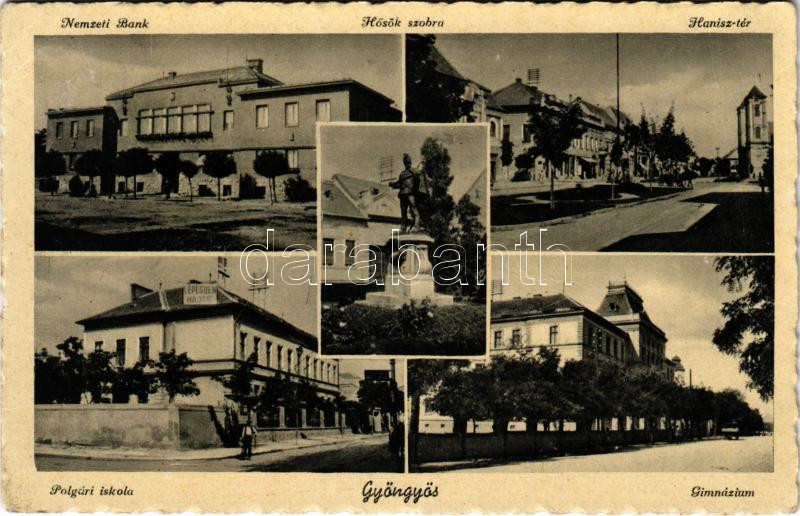 1941 Gyöngyös, Nemzeti Bank, Hősök szobra, emlékmű, Hanisz tér, polgár... https://www.darabanth.com/de/469-Fernauktion/469.0/Ansichtskarten/Ungarn~1500004/1941-Gyongyos-Nemzeti-Bank-Hosok-szobra-emlekmu-Hanisz-ter-polgari-iskola-Gimnazium-~II3172219