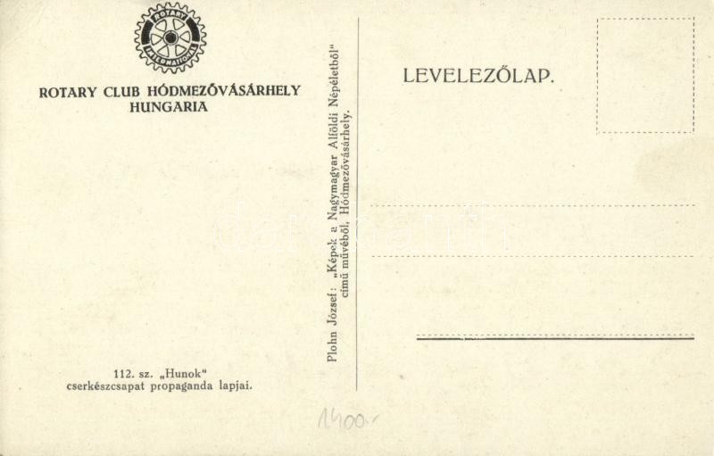 Beschreibung: HódmezÅ‘vásárhely, Rotary Club HódmezÅ‘vásárhely Hungaria, kaszálás. Plohn József "Képek a Nagymagyar Alföldi NépéletbÅ‘l" cÃmű művébÅ‘l. A 112. sz. "Hunok" cserkészcsapat propaganda lapjai (EK)