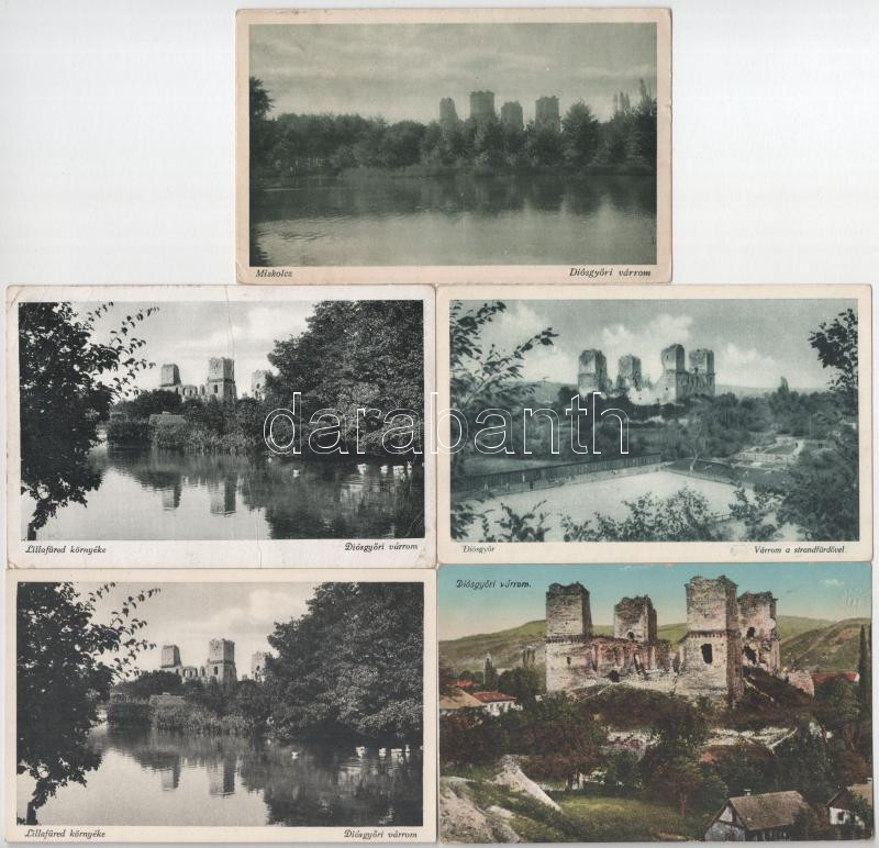 Beschreibung: Miskolc, Diósgyőr és Lillafüred - 5 db régi képeslap