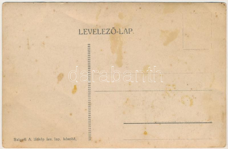 Beschreibung: Mór, Szénbánya, Ernő táró siklórészlet, iparvasút. Szigeti A. látkép. lev. lap. készítő (gyűrődések / creases)