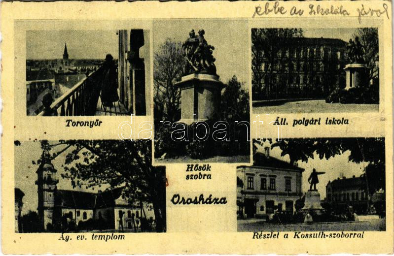 Orosháza, Toronyőr, Hősök szobra, Állami polgári iskola, Evangélikus t... https://www.darabanth.com/de/469-Fernauktion/469.0/Ansichtskarten/Ungarn~1500004/Oroshaza-Toronyor-Hosok-szobra-Allami-polgari-iskola-Evangelikus-templom-Kossuth-szobor~II3172238