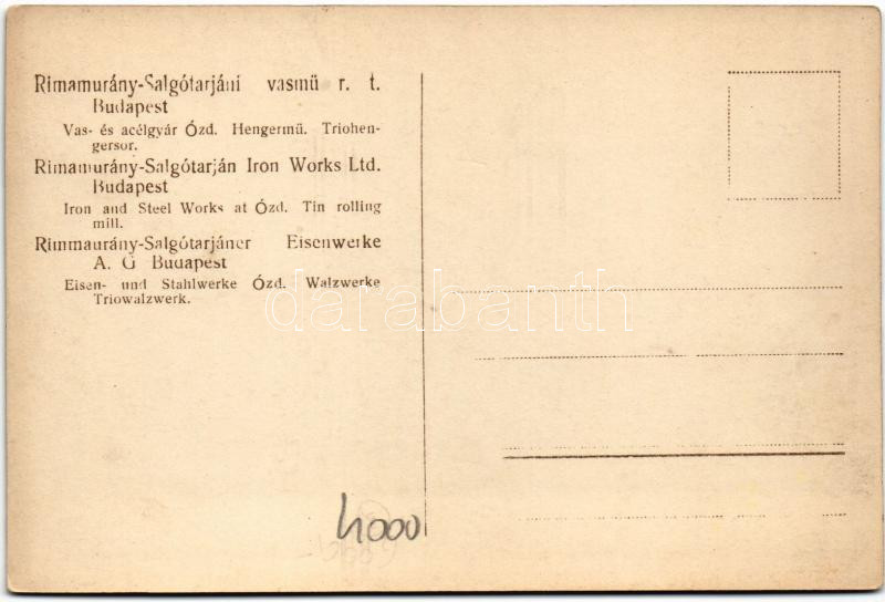 Ózd, Rimamurány-Salgótarjáni vasmű r.t. vas- és acélgyára, belső, heng... https://www.darabanth.com/de/469-Fernauktion/469.0/Ansichtskarten/Ungarn~1500004/Ozd-Rimamurany-Salgotarjani-vasmu-rt-vas-es-acelgyara-belso-hengermu-triohengersor~II3169508