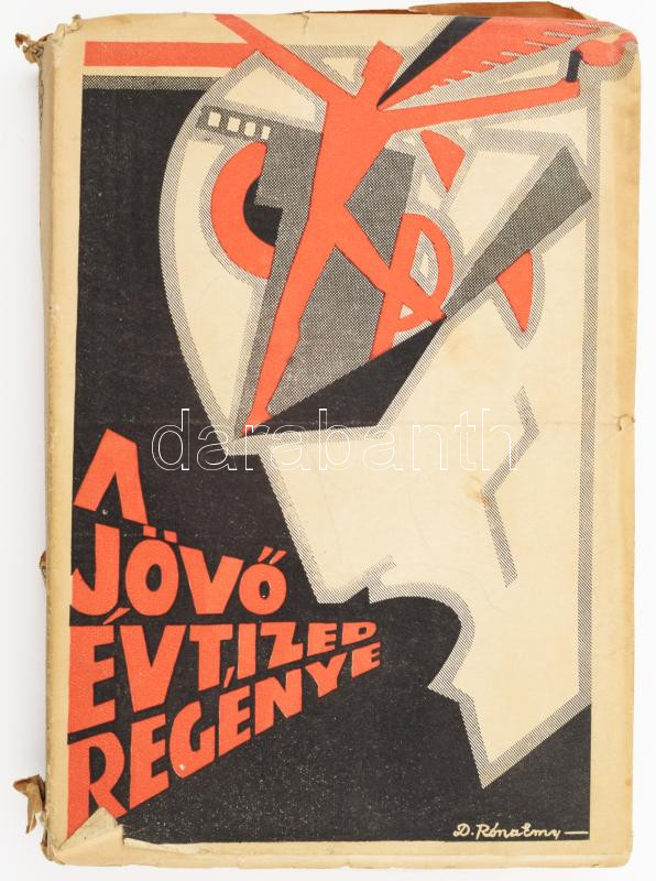 A jövő évtized regénye. A "Magyar Hírlap" újévi ajándékkönyve. Bp.,[1930], Magyar Hírlap,(Globus-ny.) 351+1 p. Róna Emmy (1904-1988) grafikusművész avantgárd könyvborítójával. Írók, tudósok, orvosok válaszoltak a szerkesztő azon kérdésére, hogy mit hoz majd az 1930-as évtized. Móra Ferenc, Ignotus, Zsolt Béla, Marczali Henrik, Louis Blériot, Bálint Lajos, Hevesi Sándor, Lovik Károly, Pásztor Mihály és mások írásaival. Kiadói papírkötés, kiadói papír védőborítóban, foltos, szakadt borítóval, sérült könyvtesttel.