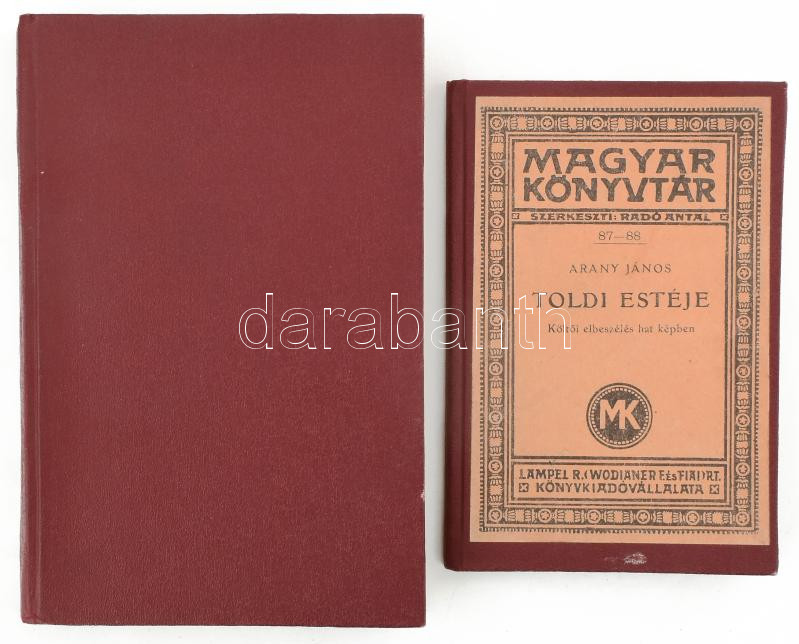 Arany János: Toldi. Költői elbeszélés. Lehr Albert magyarázataival. Bp., 1922., Franklin. Átkötött egészvászon-kötés. + Arany János: Toldi estéje. Magyar Könyvtár 87-88. Bp., én., Lampel R. (Wodianer F. és Fiai.) Átkötött egészvászon-kötés.