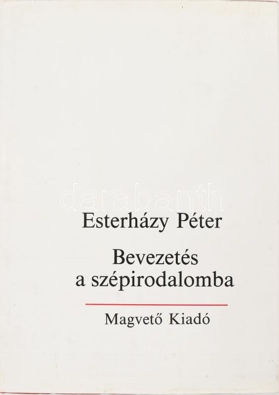 Esterházy Péter: Bevezetés a szépirodalomba. A szerző, Esterházy Péter (1950-2016) író által DEDIKÁLT példány. Bp.,1986.,Magvető, 723+5 p. Első kiadás! Kiadói egészvászon-kötés, kissé foltos kiadói papír védőborítóban, egy lap sarkán kis hiánnyal.