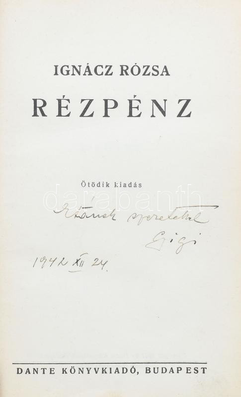 Ignácz Rózsa: Rézpénz. Bp., 1941, Dante, 453 p. Átkötött egészvászon-k... https://www.darabanth.com/de/469-Fernauktion/469.0/Bucher/Bucher-Andere-kuriositaten~2000025/Ignacz-Rozsa-Rezpenz-Bp-1941-Dante-453-p-Atkotott-egeszvaszon-kotesben-kisse-kop~II3118363