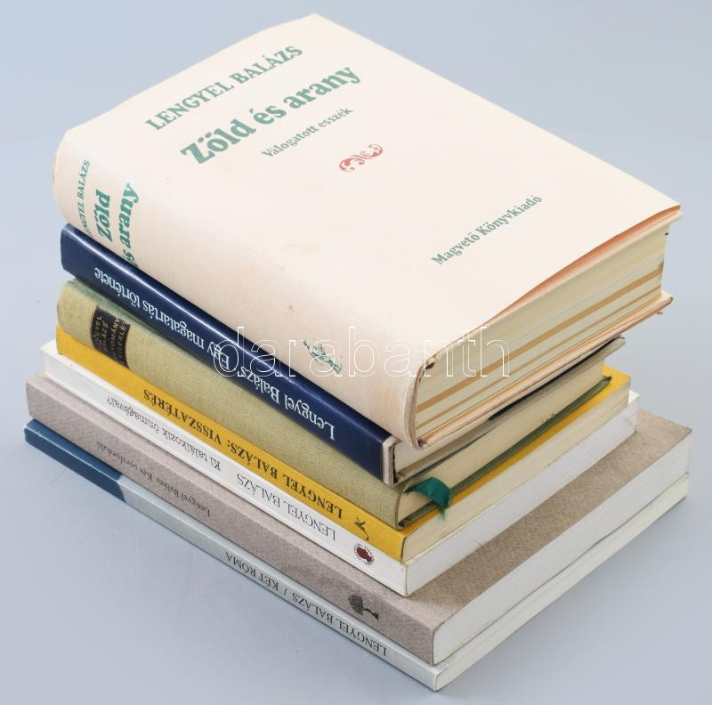 Lengyel Balázs 7 műve. Mindegyik a szerző, Lengyel Balázs (1918-2007) Széchenyi-díjas műkritikus, író által Mohás Lívia (1928-2024) pszichológus, József Attila-díjas író részére DEDIKÁLT példány. Két Róma. Esszék. Bp., 1995, Balassi. Kiadói papírkötés.; Két sorsforduló. Válogatott esszék. Bp., 1998, Balassi. Kiadói papírkötés.; Ki találkozik önmagával? Tanulmányok, emlékezések, naplójegyzetek. Bp.,2001,Széphalom. Kiadói papírkötés.; Visszatérés. Esszék, tanulmányok. Pécs,1990,Jelenkor. Kiadói papírkötés.; Hagyomány és kísérlet. Elvek és utak. Bp.,1972,Magvető. Kiadói egészvászon-kötés.; Egy magatartás története. Esszék. Bp.,1986,Magvető. Kiadói egészvászon-kötés, kiadói papír védőborítóban.; Zöld és arany. Válogatott esszék. Bp., 1988, Magvető. Kiadói egészvászon-kötés, kiadói papír védőborítóban.;