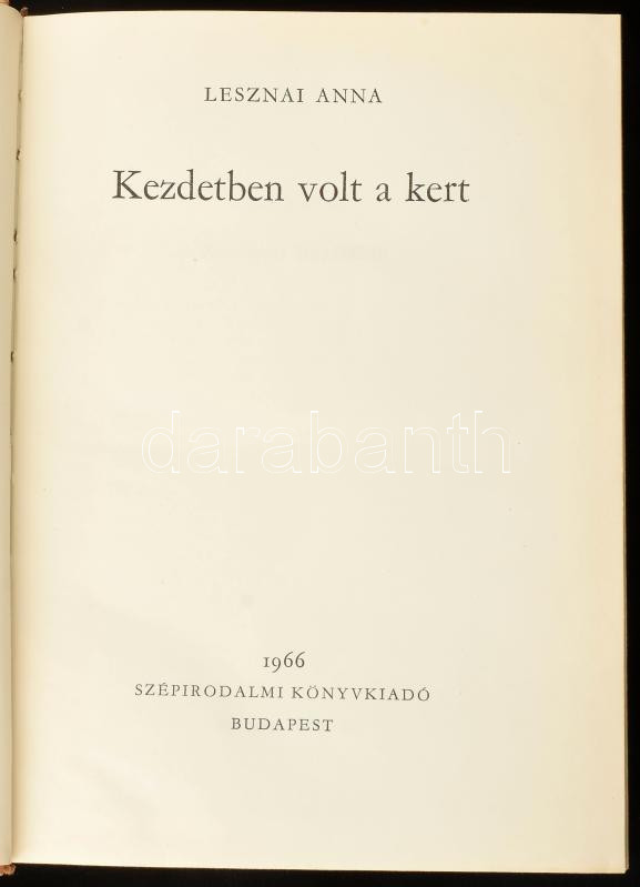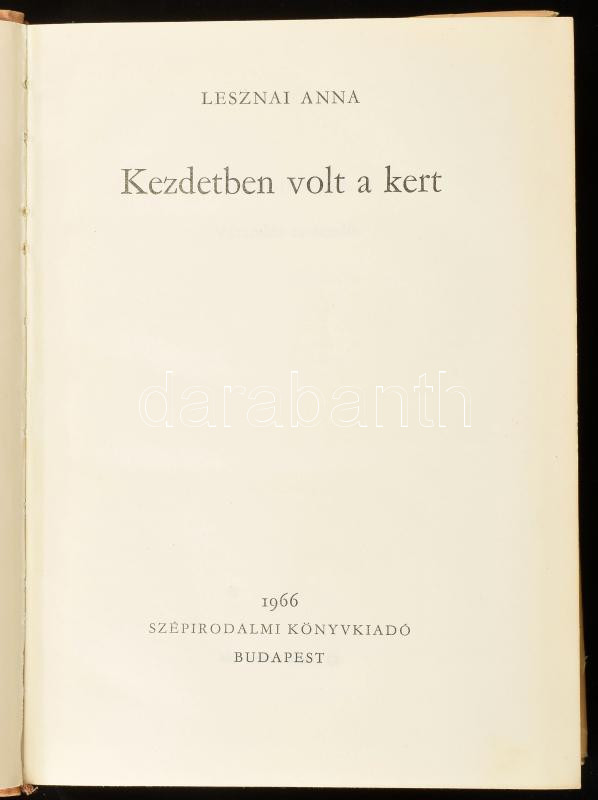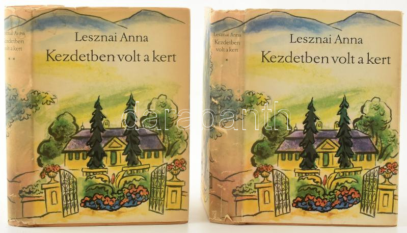 Lesznai Anna: Kezdetben volt a kert. I.-II. kötet. Bp., 1966, Szépirodalmi. Első kiadás. Kiadói egészvászon kötésben, kiadói kissé sérült és kissé foltos papír védőborítóval.