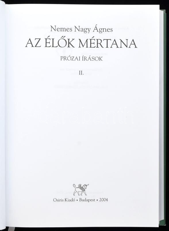 Nemes Nagy Ágnes: Az élők mértana I-II. Prózai írások. Bp., 2004, Osiris. Kiadói kartonált papírkötés, kiadói papír védőborítóval, II. kötet védőborítóján apró sérüléssel, máskülönben jó állapotban.