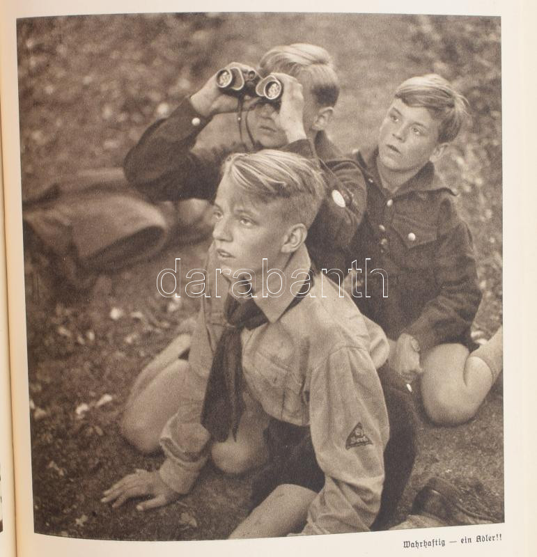 Axel von Graefe: Jungvolk im Lager. Berlin,én., Verlag Junge Generation. Német nyelven. Gazdag fekete-fehér propaganda képanyaggal illusztrált. Kiadói papírkötés, a címlap utáni lap hiányzik, kissé kopott borítóval, a gerincen kis folttal.