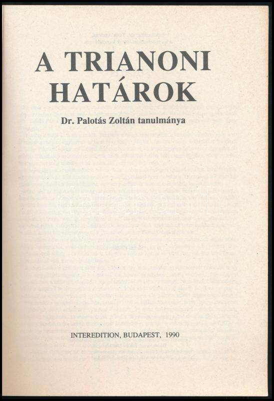 Dr. Palotás Zoltán: A trianoni határok. Bp., 1990, Interedition. Kiadó... https://www.darabanth.com/de/469-Fernauktion/469.0/Bucher/Bucher-Geschichte~1000037/Dr-Palotas-Zoltan-A-trianoni-hatarok-Bp-1990-Interedition-Kiadoi-papirkotes-jo-alla~II3176038