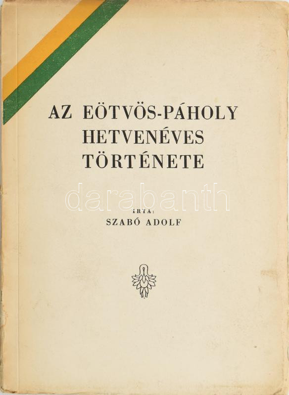 Szabó Adolf: Az Eötvös-páholy hetvenéves története. Bp.,(1947., Márkus-ny.,) 56 p. Kiadói papírkötés, kissé kopott borítóval, kissé sérült gerinccel, javított kötéssel. A magyarországi páholyok működését 1950-ben betiltották. Rendkívül ritka!