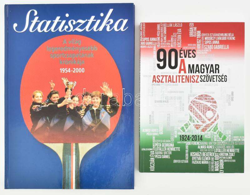 2 db asztalitenisszel foglalkozó könyv. Komlósi Gábor (szerk.): 90 éves a magyar asztalitenisz szövetség + Lévai György (szerk): Statisztika, a világ legeredményesebb sportcsapatának krónikája 1954-2010.