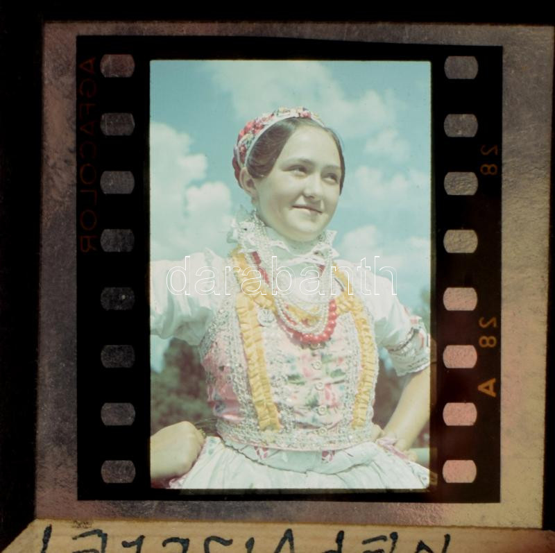 cca 1940 Lány népviseletben, színes Agfacolor diapozitív, 4×3,5 cm https://www.darabanth.com/de/469-Fernauktion/469.0/Fotografie/Foto~500023/cca-1940-Lany-nepviseletben-szines-Agfacolor-diapozitiv-4C3973-5-cm~II3175547