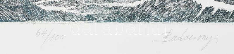 Beschreibung: Badacsonyi Sándor (1949-2016): Bukott angyal. Színes rézkarc, papír, jelzett, számozott (64/100), 37,5×29,5 cm