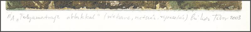 Beschreibung: Csikós Tibor (1957-): "Folyamatrajz ablakkal". Rézkarc, metszés, repesztés, papír, jelzett, művészpéldány EA jelzéssel, 24x17 cm