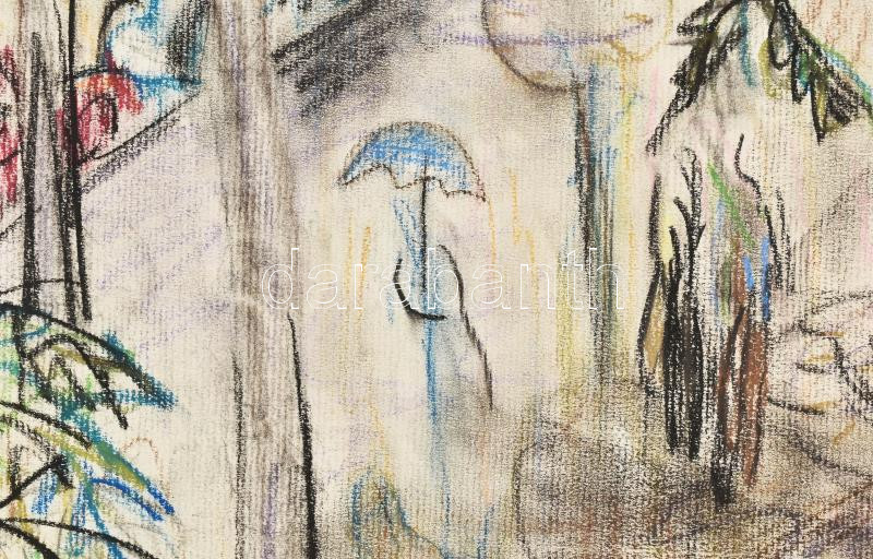 Czóbel Béla (1883-1976): Nagyvárosi forgatag. Pasztell, papír. Jelezve jobbra lent: Czóbel. Proveniencia: Papp János, a Vakok Iskolájának helyettes igazgatójának gyűjteményéből. Mellékelve egy Czóbel Béla által Papp Jánosnak küldött képeslap. 30x23,5 cm. Paszpartuban.