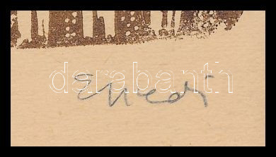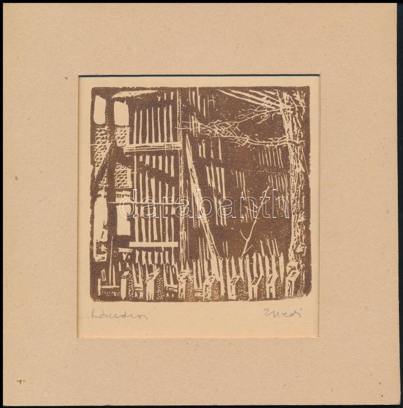 Beschreibung: Ecsedi Mária (1941-): Rácváros. Linómetszet, papír, jelzett. Paszpartuban. 9,5x9,5 cm