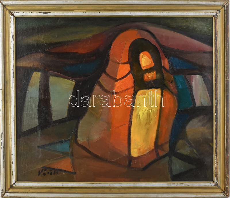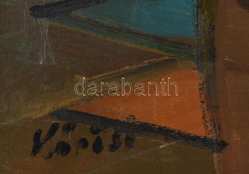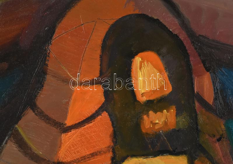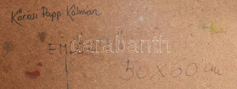 Kőrösi Papp Kálmán (1940-): Emlékmű, 1970-es évek. Olaj, farost, jelezve balra lent, hátoldalán autográf felirattal. 50x60 cm. Dekoratív fakeretben. / oil on fibre wood, signed, with autograph description on the reverse, framed. 50x60 cm