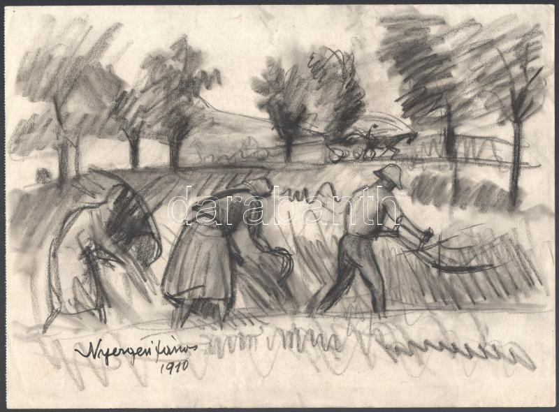 Nyergesi János (1895-1982): Aratók, 1910. Szén, papír, jelzett. 24,5x3... https://www.darabanth.com/de/469-Fernauktion/469.0/Gemalde-und-Grafiken/Gemalde-und-Grafiken~500001/Nyergesi-Janos-1895-1982-Aratok-1910-Szen-papir-jelzett-24-5x33-cm~II3137799