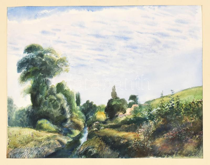 Varga Mátyás (1910-2002): Péceli táj, 1955. Akvarell, papír, jelezve j... https://www.darabanth.com/de/469-Fernauktion/469.0/Gemalde-und-Grafiken/Gemalde-und-Grafiken~500001/Varga-Matyas-1910-2002-Peceli-taj-1955-Akvarell-papir-jelezve-jobbra-lent-paszpartuban-~II3149572
