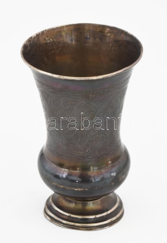 Beschreibung: 185?,Orosz ezüst (Ag) pohár, jelzett, mesterjegyes, kissé deformált nettó 103 g