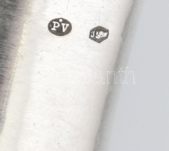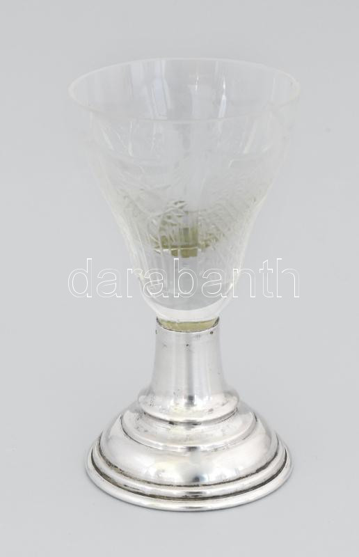 Ezüst (Ag) talpú üvegpohár, jelzett, csorbával, m: 8,5 cm, bruttó: 57 ... https://www.darabanth.com/de/469-Fernauktion/469.0/Juwellen-und-Kunstobjekte-aus-Edelmetall/Juwellen-und-Kunstobjekte-aus-Edelmetall~1000036/Ezust-Ag-talpu-uvegpohar-jelzett-csorbaval-m-8-5-cm-brutto-57-g~II3013299