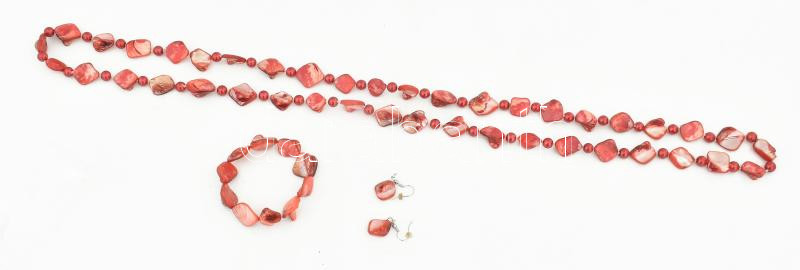 Beschreibung: Piros gyöngyház garnitúra: nyaklánc, karkötő, fülbevalópár