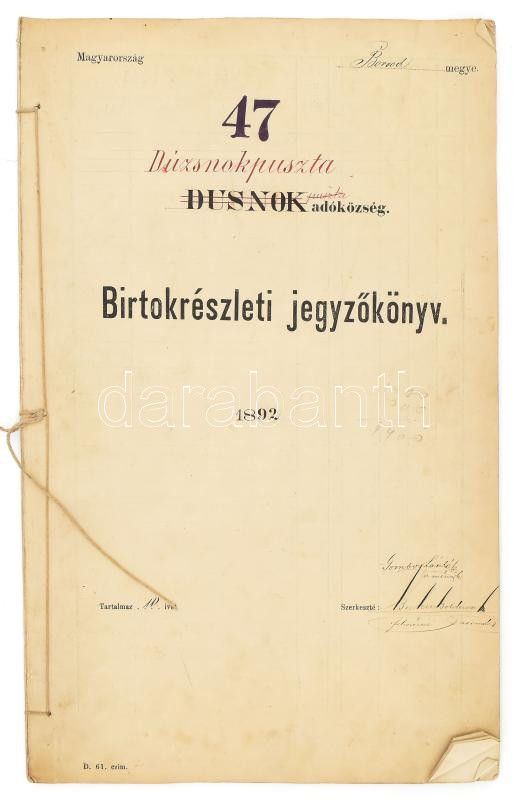 1891 Dúzsnokpuszta, Dusnok adóközség Borsod megye, Birtokrészleti jegy... https://www.darabanth.com/de/469-Fernauktion/469.0/Kunst-Dokumente-andere-Sammelgebiete/Dokument~500020/1891-Duzsnokpuszta-Dusnok-adokozseg-Borsod-megye-Birtokreszleti-jegyzokonyv-a-foldtulajdo~II3140268