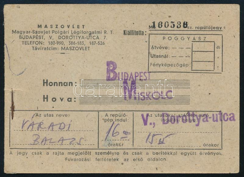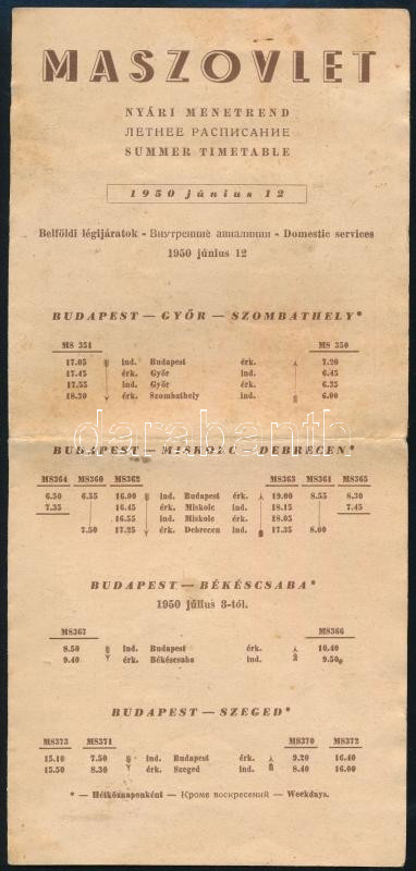 1950 Maszovlet (Magyar-Szovjet Polgári Légiforgalmi Rt.) nyári menetre... https://www.darabanth.com/de/469-Fernauktion/469.0/Kunst-Dokumente-andere-Sammelgebiete/Dokument~500020/1950-Maszovlet-Magyar-Szovjet-Polgari-Legiforgalmi-Rt-nyari-menetrend-plus-Budapest-Miskolc-repu~II3175663