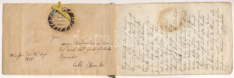 1829 Házi készítésű üdvözlőlap benne hajtincs, két litográfia. 3 lapbó... https://www.darabanth.com/de/469-Fernauktion/469.0/Kunst-Dokumente-andere-Sammelgebiete/Drucksachen~1000014/1829-Hazi-keszitesu-udvozlolap-benne-hajtincs-ket-litografia-3-lapbol-osszeallitva~II3171758