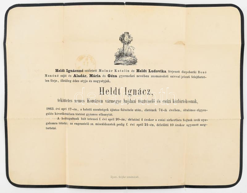 1863 Heldt Ignác komárom megyei britokos és tisztviselő halálozási ért... https://www.darabanth.com/de/469-Fernauktion/469.0/Kunst-Dokumente-andere-Sammelgebiete/Drucksachen~1000014/1863-Heldt-Ignac-komarom-megyei-britokos-es-tisztviselo-halalozasi-ertesitoje~II3175735