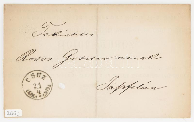 Beschreibung: 1863 Heldt Ignác komárom megyei britokos és tisztviselő halálozási értesítője