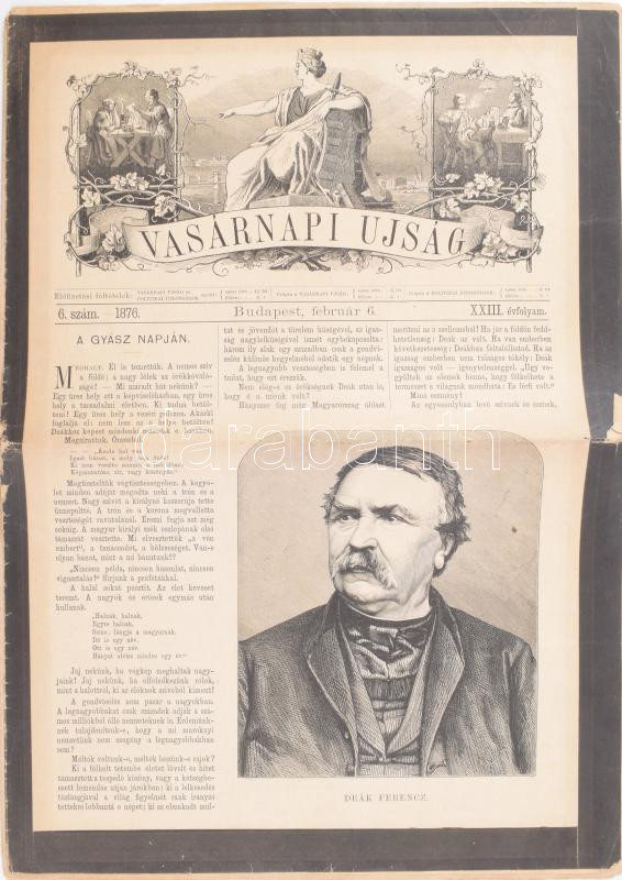 1876 A Vasárnapi Újság Deák Ferenc haláláról és temetéséről tudósító g... https://www.darabanth.com/de/469-Fernauktion/469.0/Kunst-Dokumente-andere-Sammelgebiete/Drucksachen~1000014/1876-A-Vasarnapi-Ujsag-Deak-Ferenc-halalarol-es-temeteserol-tudosito-gyaszkeretes-sz~II3176546