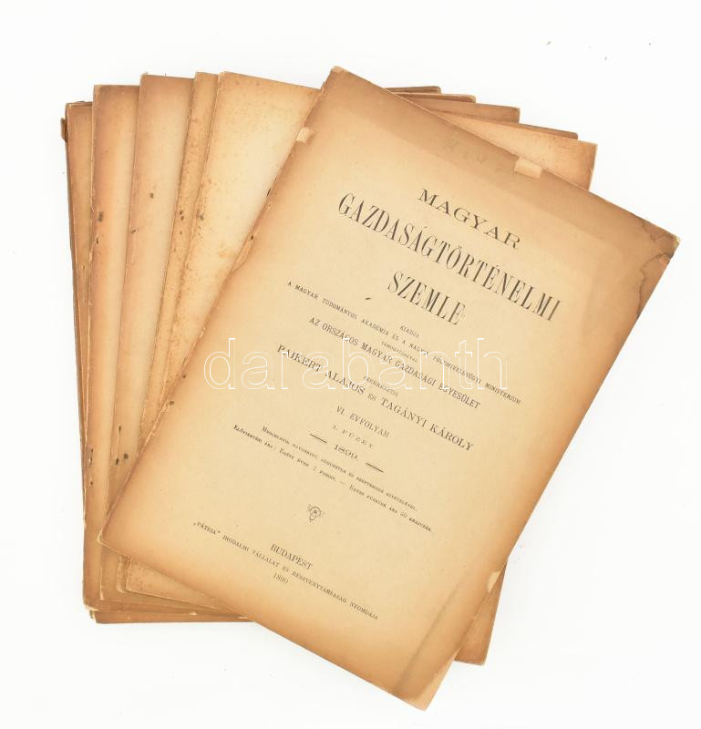 1899 A Magyar Gazdaságtörténelmi Szemle VI. évf. 1-10. szám. Szerk.: Paikert Alajos és Tagányi Károly. Bp., Országos Magyar Gazdasági Egyesület,("Pátria"-ny.) Papírkötések, szakadozott, foltos borítókkal, hiányos gerincekkel.